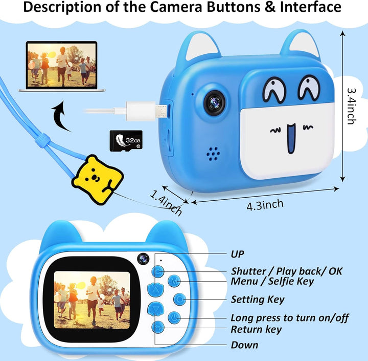 Capture fun moments with the Nameer 1080P HD Selfie Video Kids Camera! This digital camera for kids features high-quality 1080P HD video and photo capabilities, allowing children to snap clear pictures and record videos like a pro. Perfect for boys and girls, it comes with a 32GB SD card for plenty of storage, making it easy to save memories. This toddler camera is designed for small hands, with a durable and lightweight construction, ensuring it can withstand everyday adventures. Whether it’s for birthdays, holidays, or special occasions, this kids camera makes the perfect gift. Its simple interface makes it easy to use, so young photographers can start capturing pictures and videos right away. A great way to encourage creativity and exploration, this camera is sure to become a favorite toy for any child.